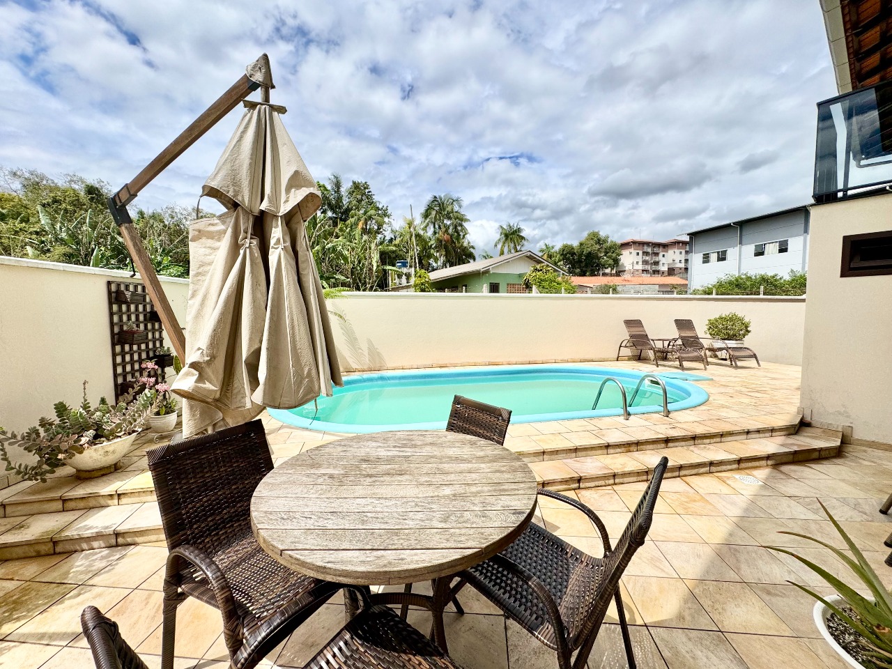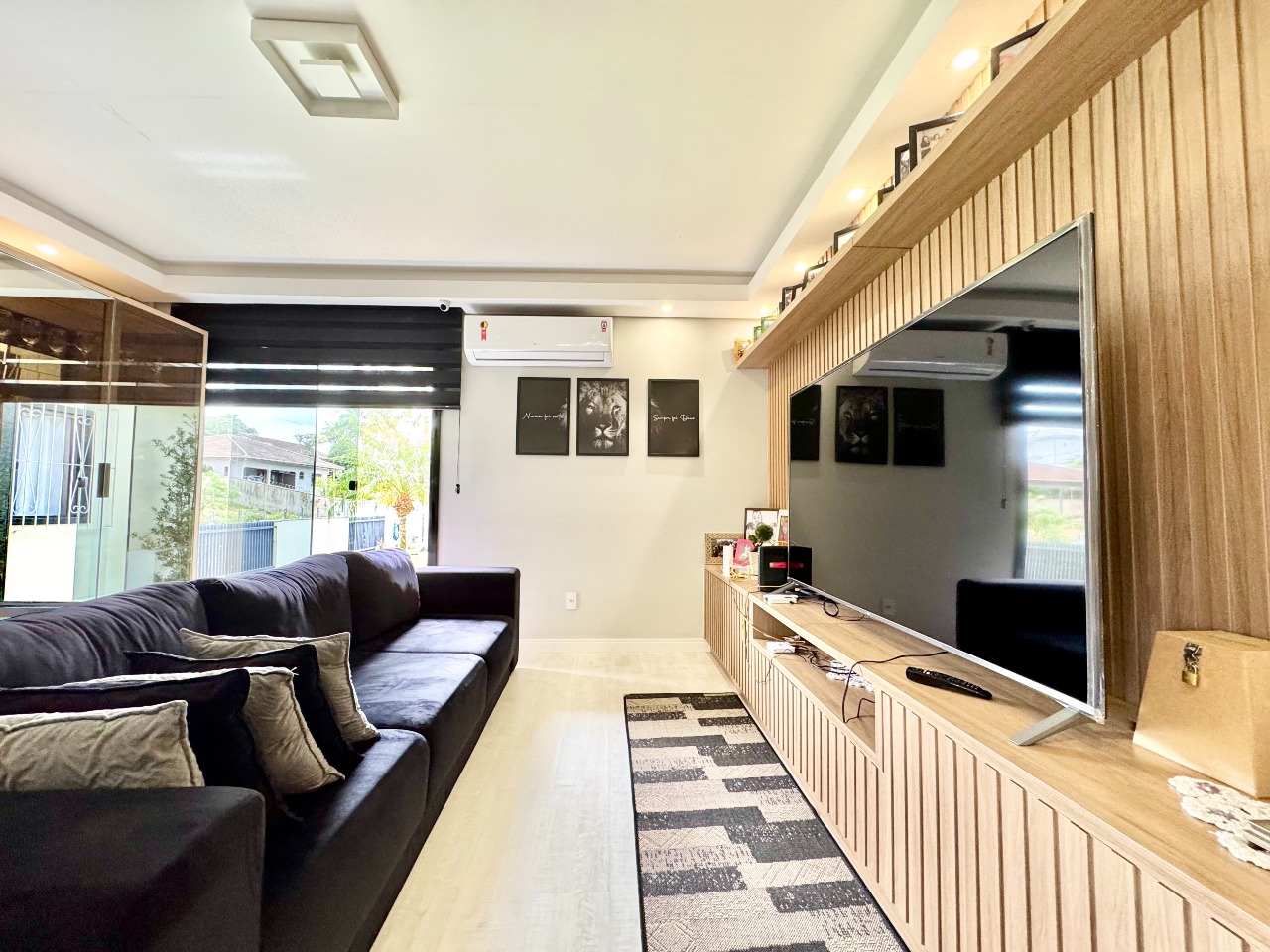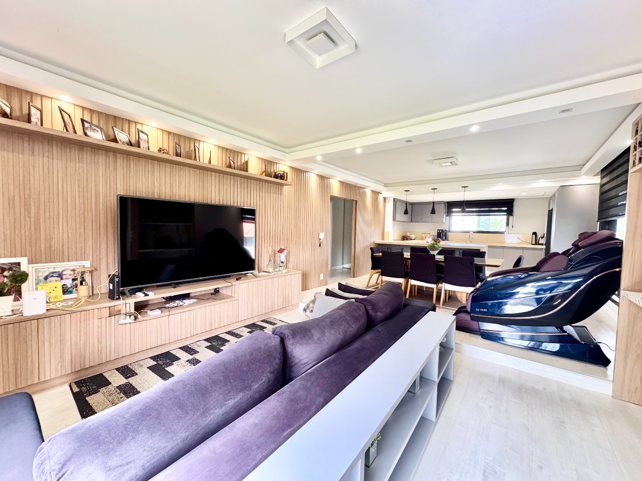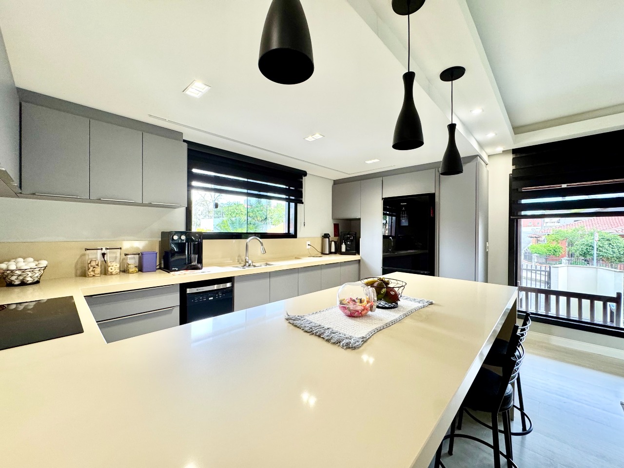 O terreno conta com 827,54m², sendo 420,48m² de área construída, distribuídos em 4 dormitórios, sendo 2 suítes, e uma delas com closet, 5 banheiros, 2 salas, cozinha e 4 vagas de garagem coberta. Para quem valoriza momentos de lazer, a casa oferece um amplo espaço de festas com churrasqueira, piscina, pátio com capacidade para acomodar mais carros e ainda uma área gramada encantadora, perfeita para aproveitar os dias ao ar livre.