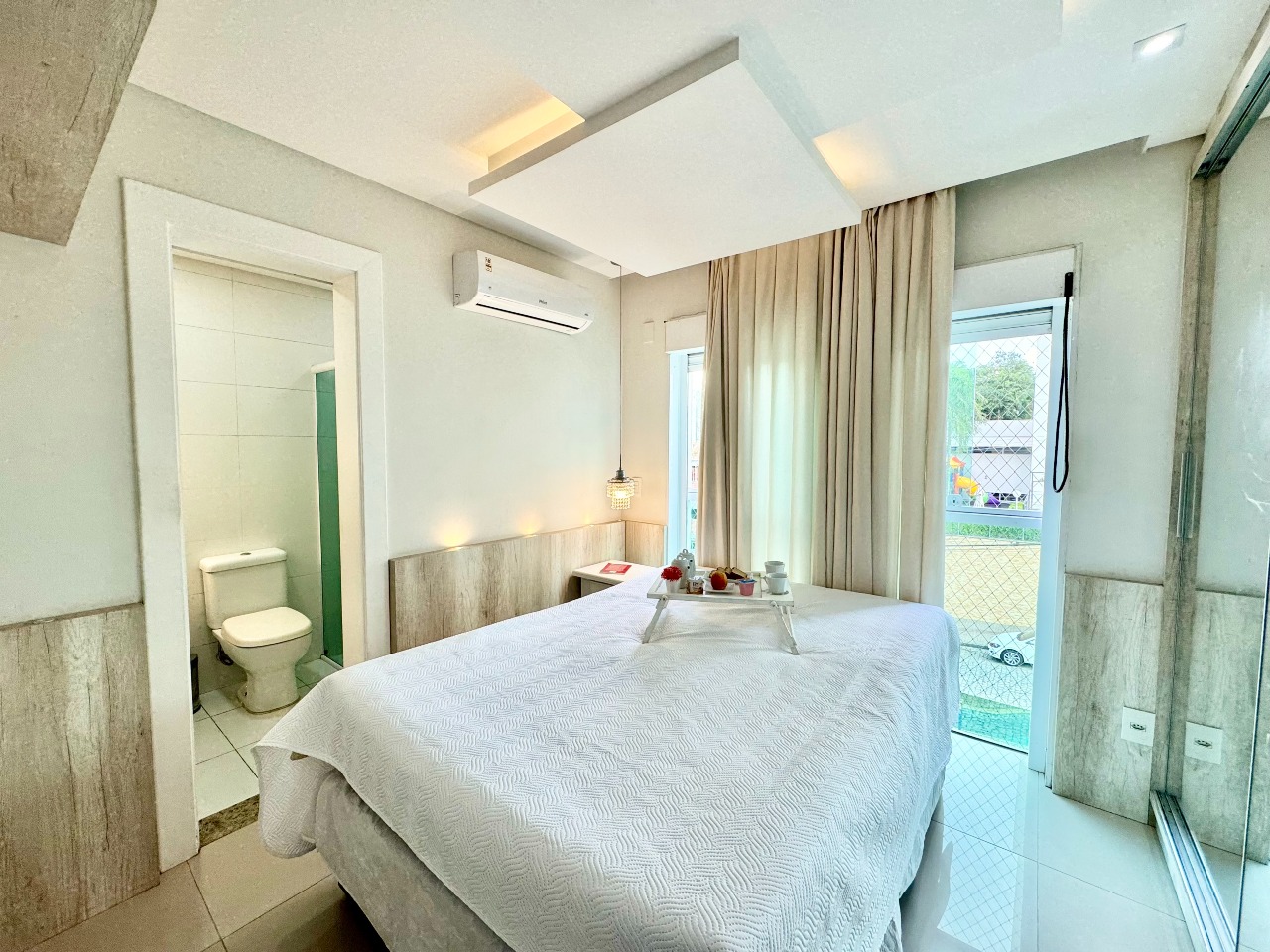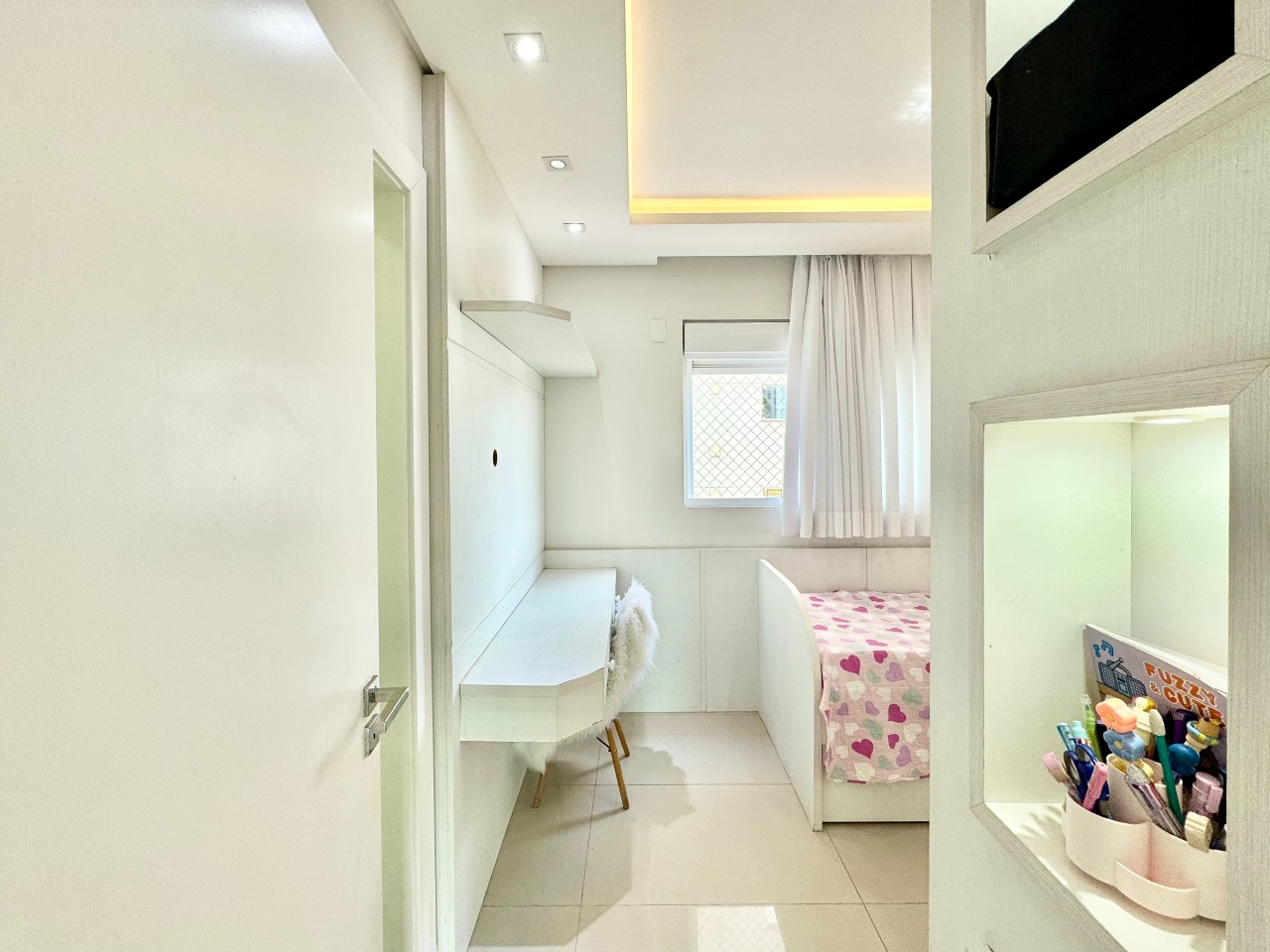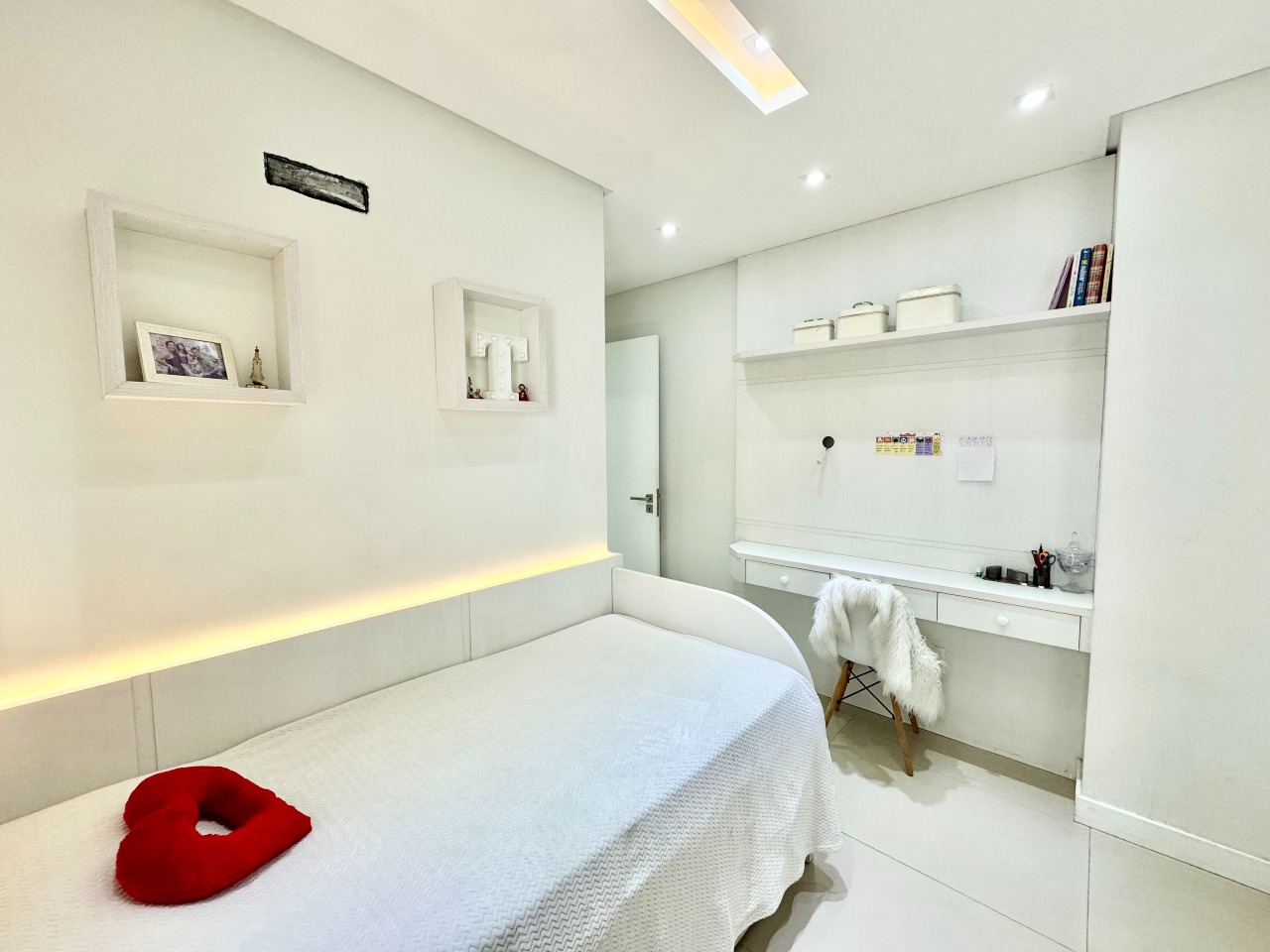 Na área de lazer, dispõe de piscina climatizada, sauna, academia equipada, salão de festas mobiliado e playground — ideal para toda a família.