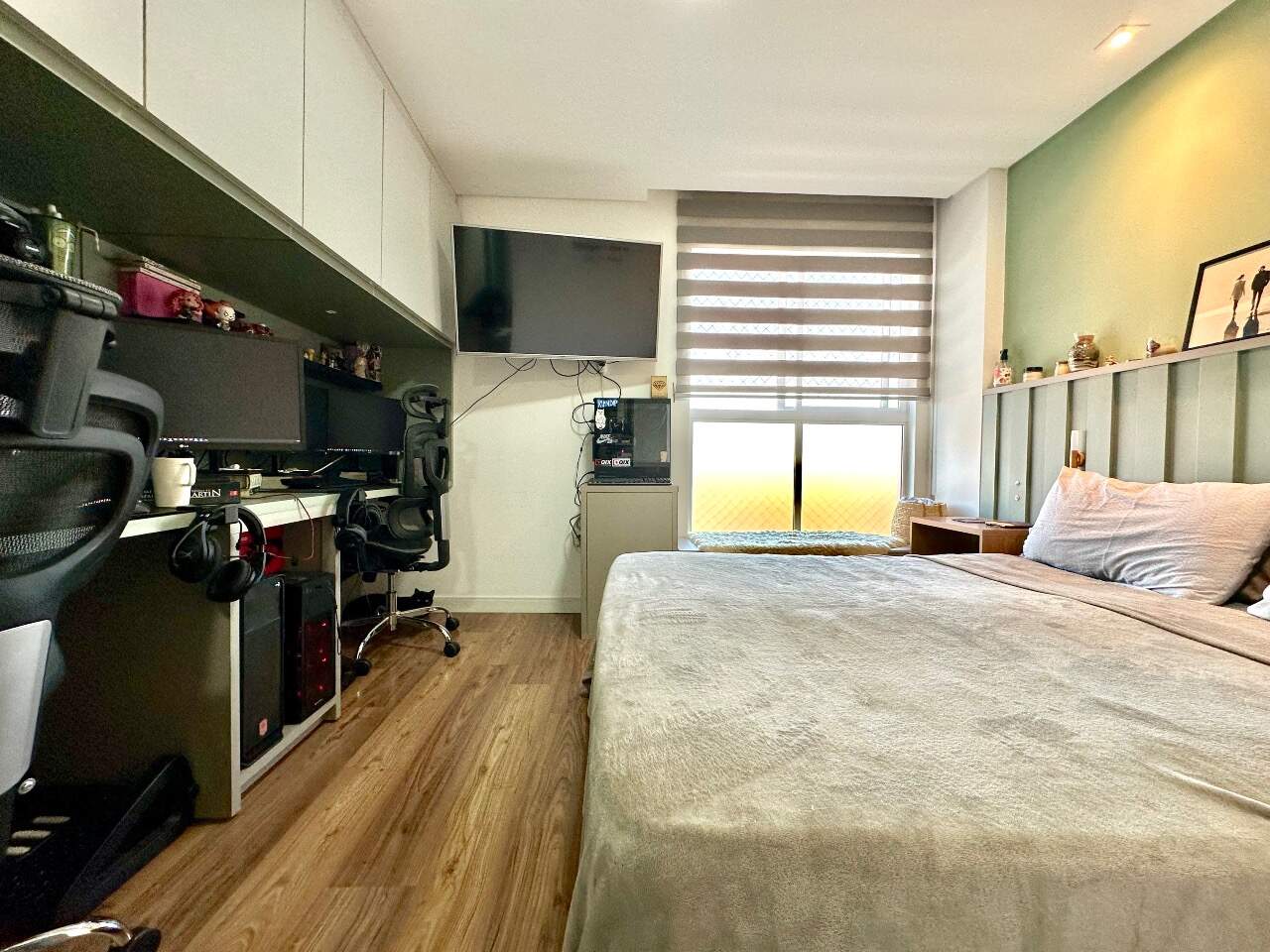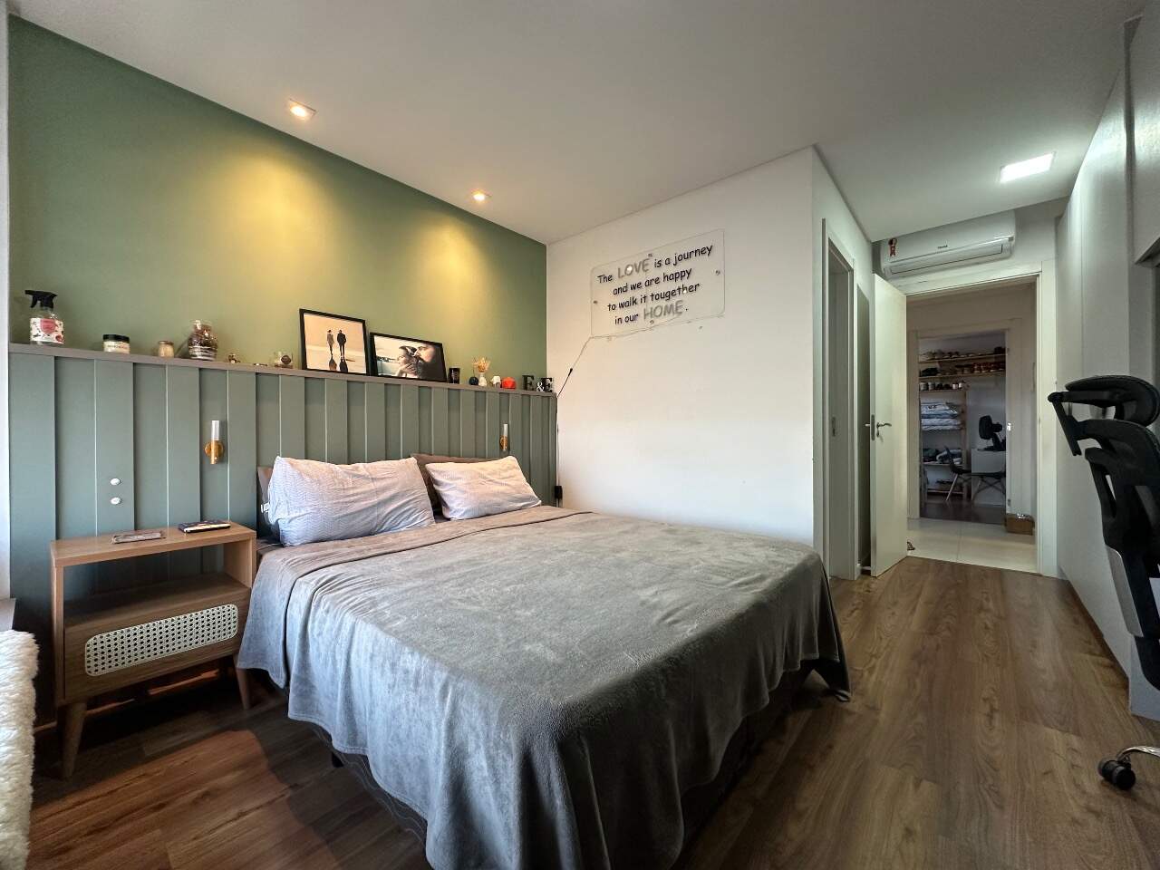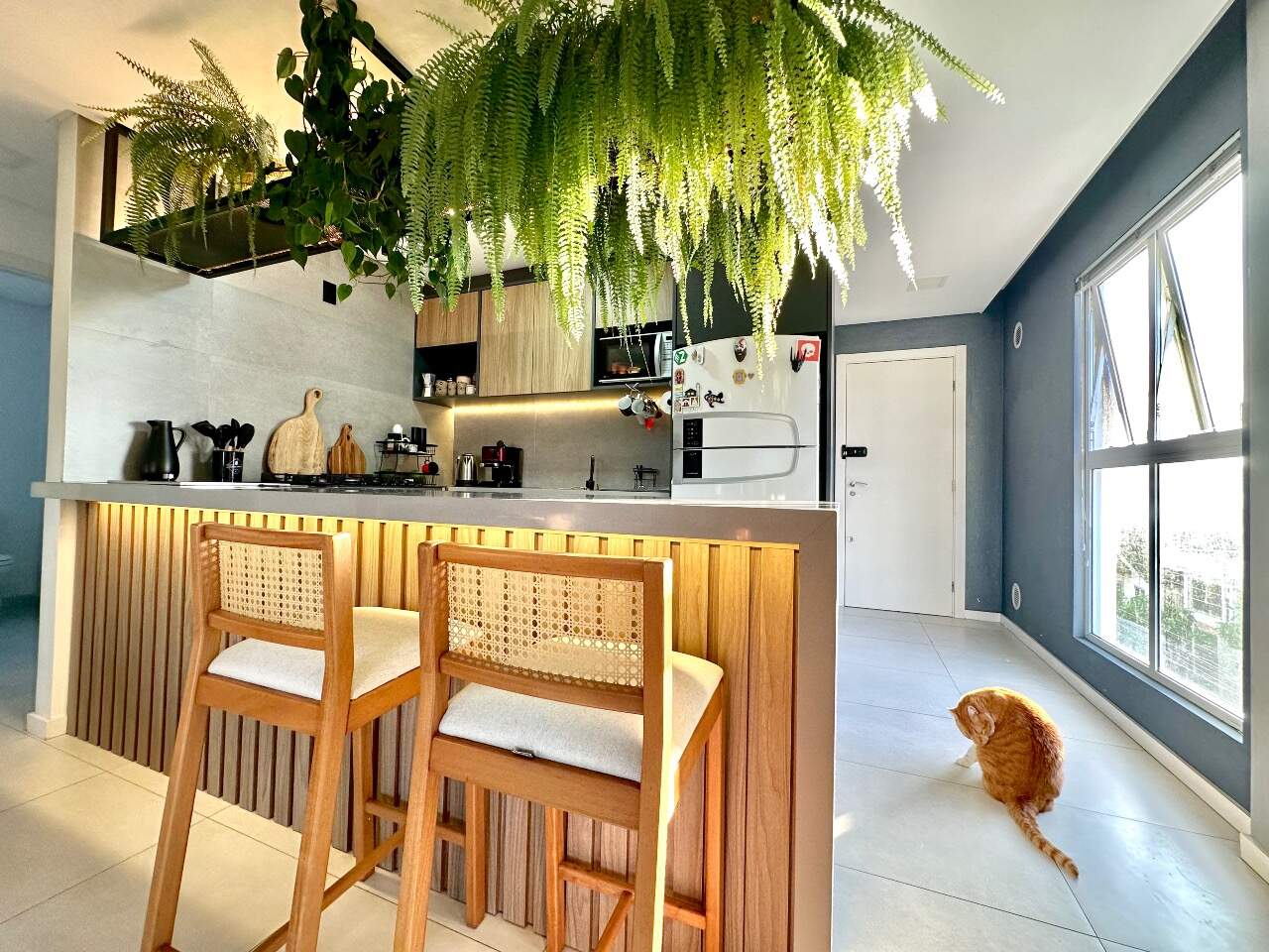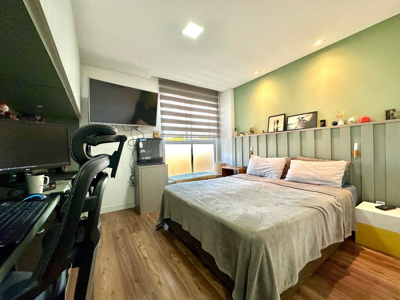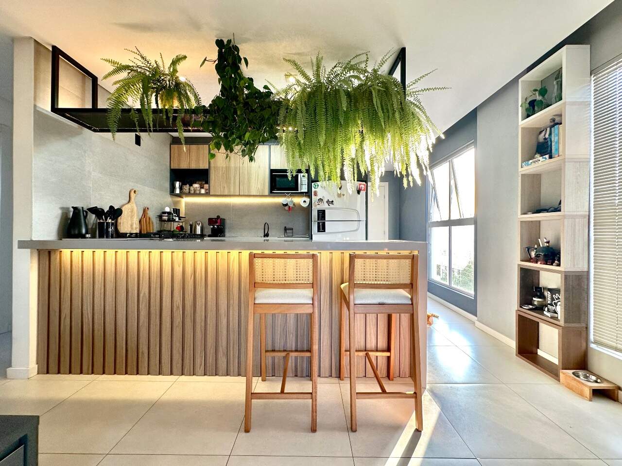 Será entregue muito bem equipado, com móveis sob medida na sala, cozinha e dormitório, fogão embutido, churrasqueira integrada à cozinha e ares-condicionados instalados. O acabamento também se destaca, com porcelanato nas áreas sociais e banheiros, piso vinílico nos dormitórios e rebaixo em gesso, garantindo elegância e modernidade aos ambientes.