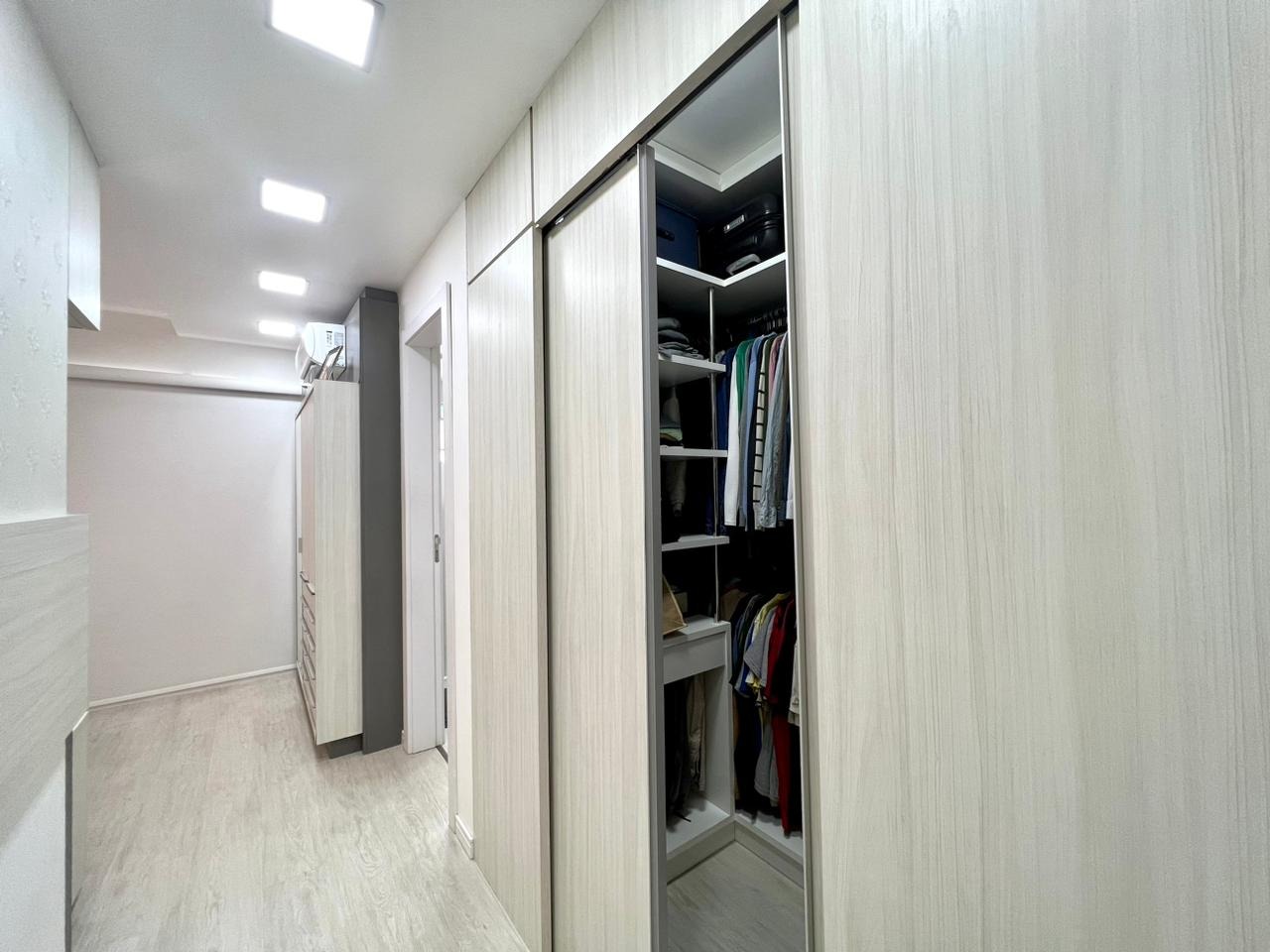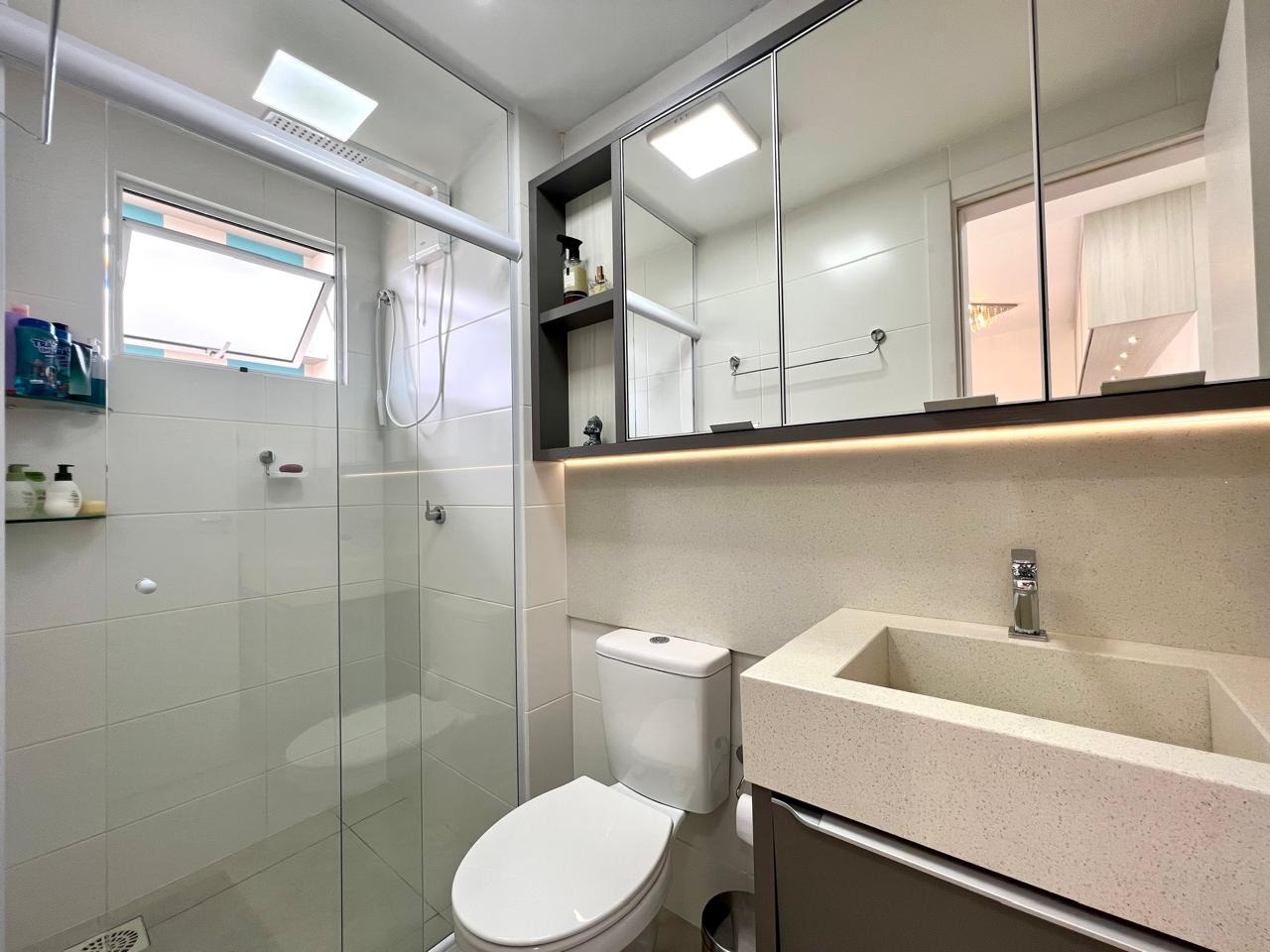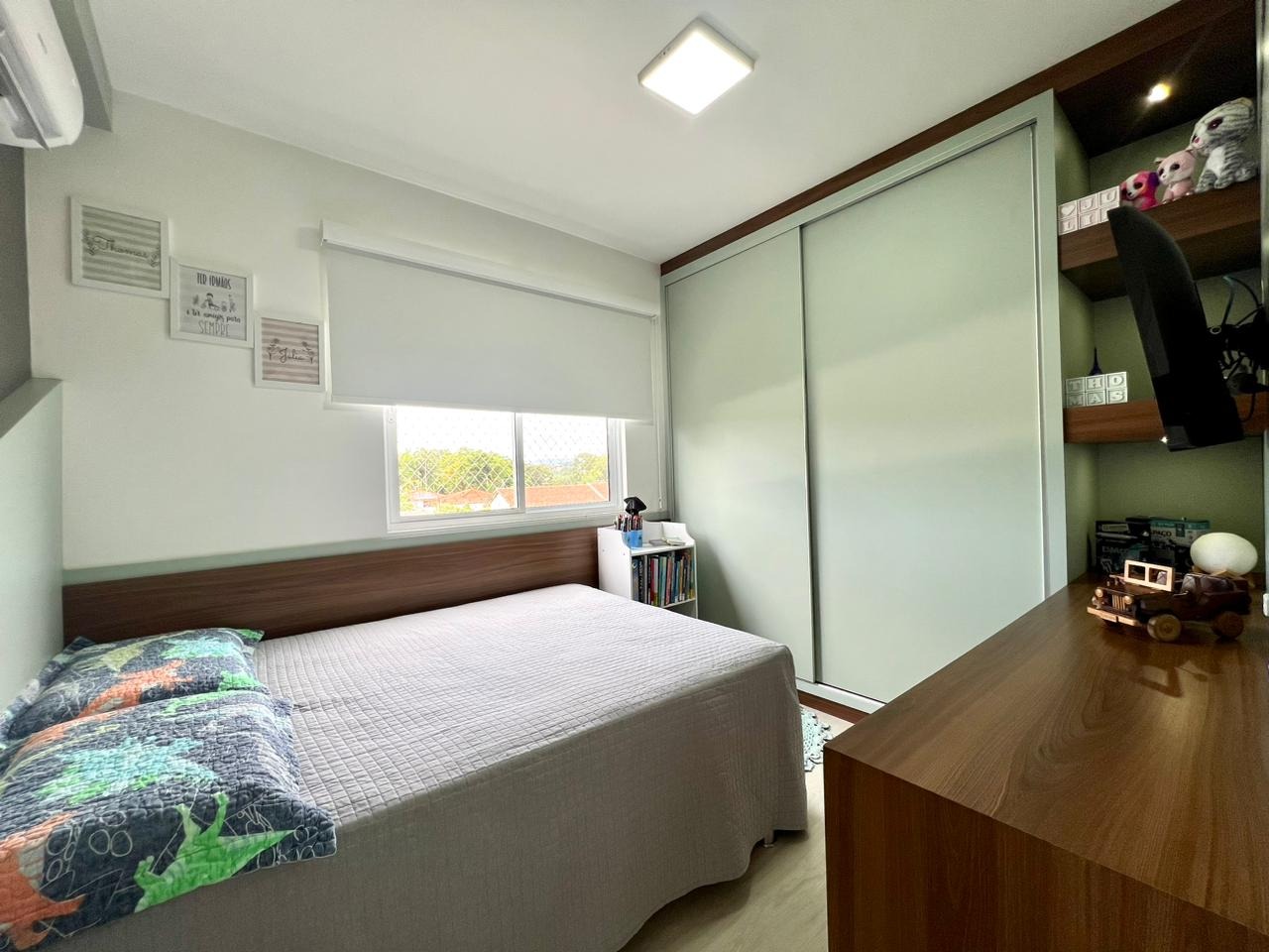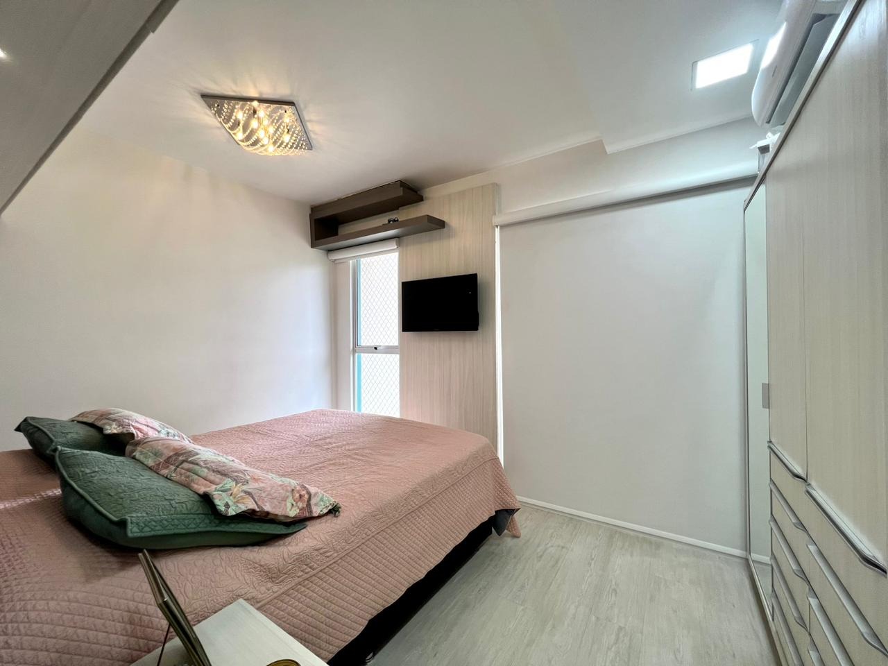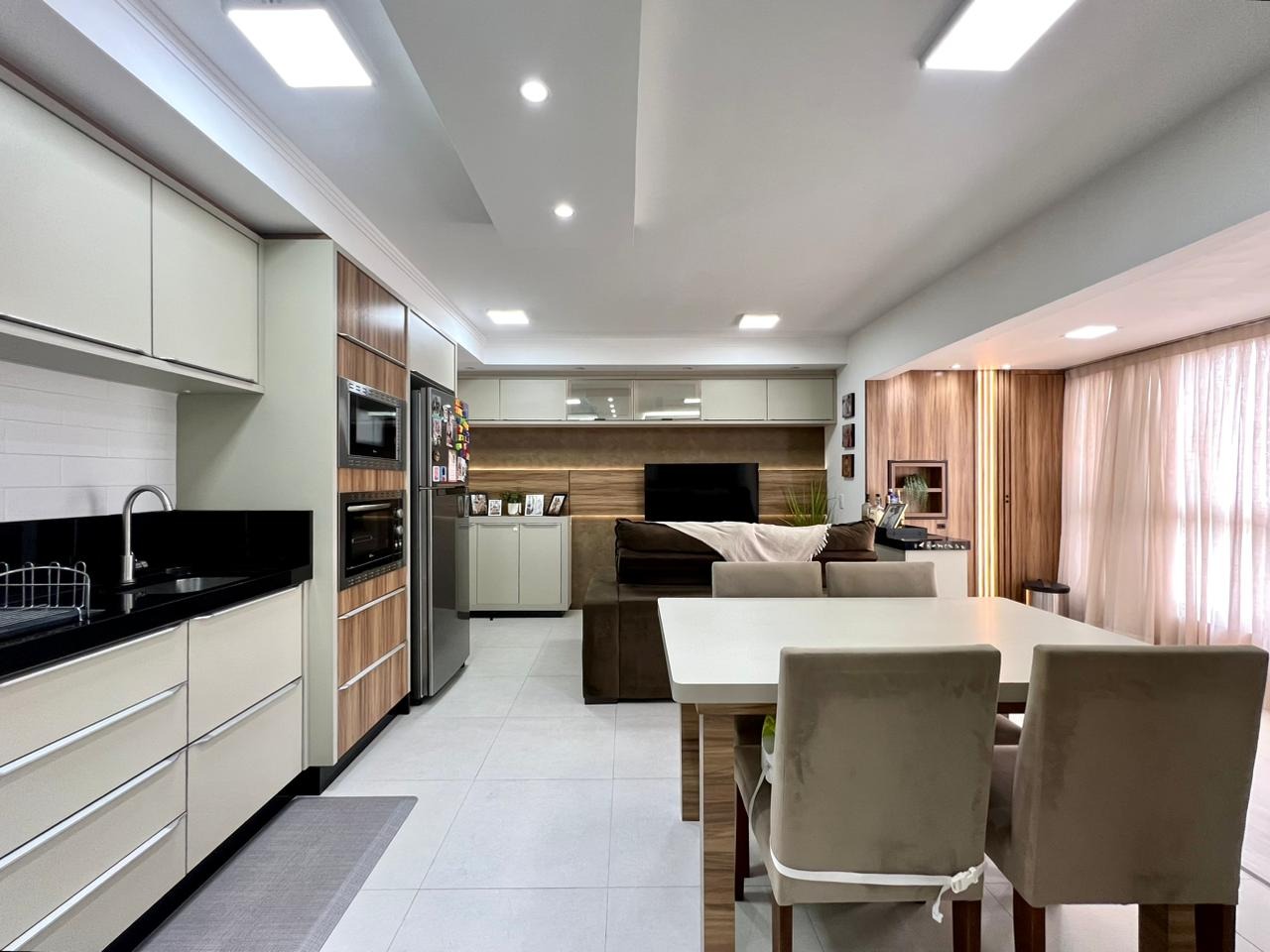 O imóvel conta com dois dormitórios, sendo uma suíte com closet, além de banheiro social. A área social possui sala de estar e jantar integradas à cozinha, criando um ambiente moderno, funcional e ideal para o convívio no dia a dia.