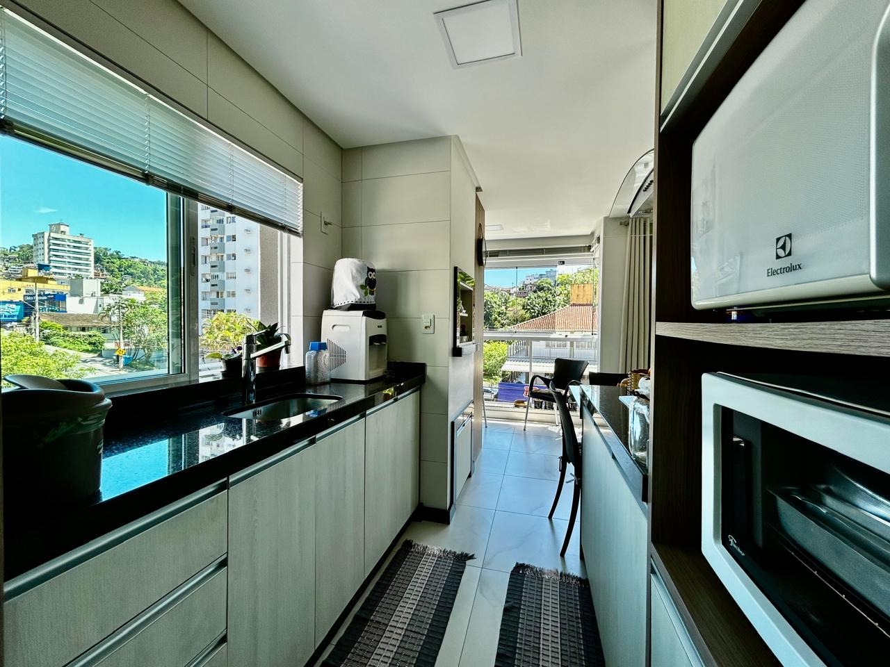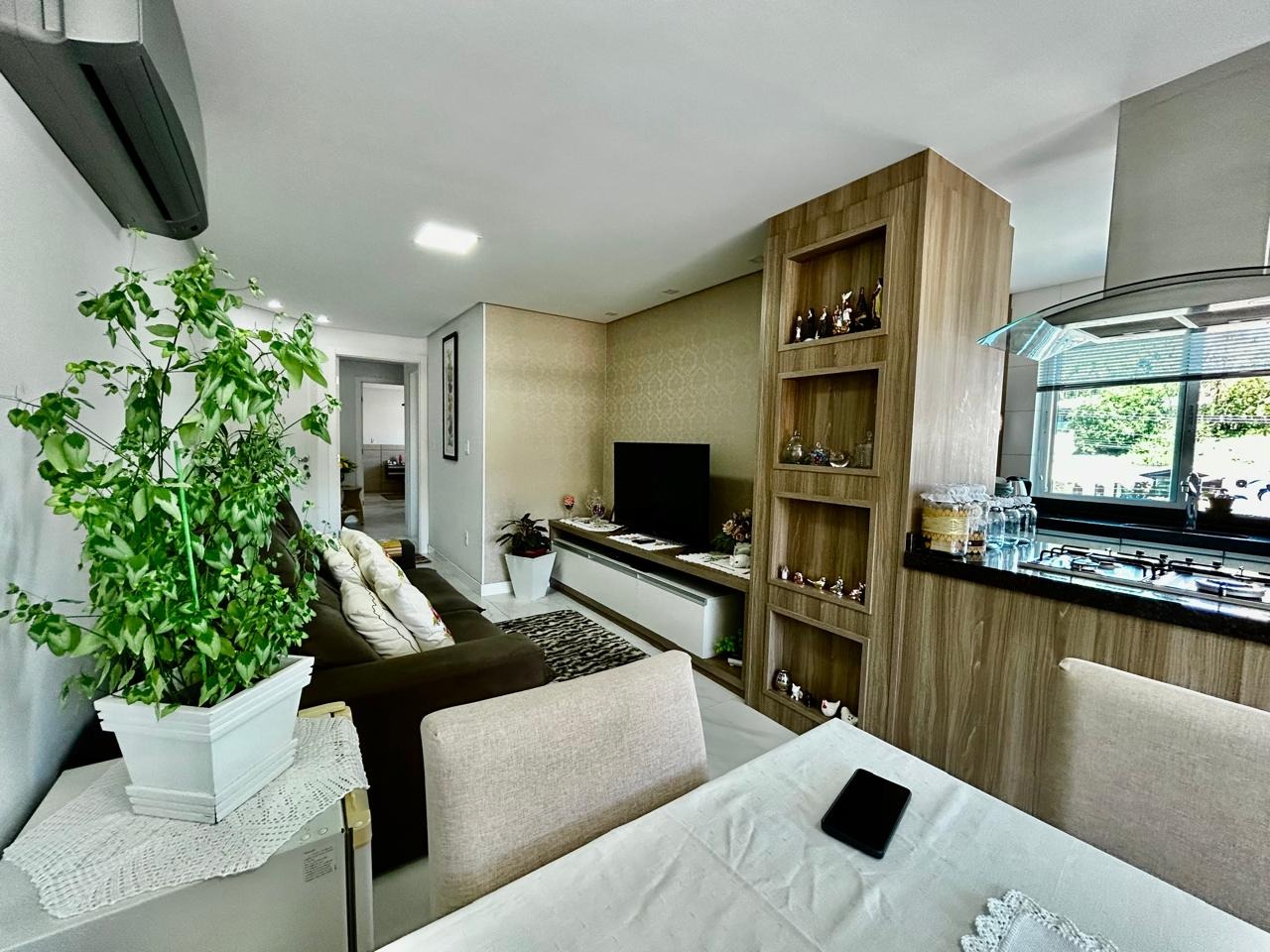 Com 78m² de área privativa, o imóvel conta com 2 dormitórios, sendo 1 suíte, living integrado, cozinha, área de serviço e sacada com churrasqueira, além de 1 vaga de garagem. Os ambientes são bem distribuídos, iluminados e mobiliados com móveis sob medida de excelente qualidade, proporcionando conforto e elegância em cada detalhe.