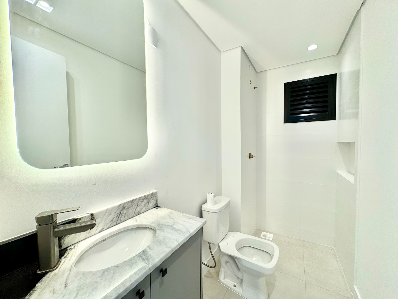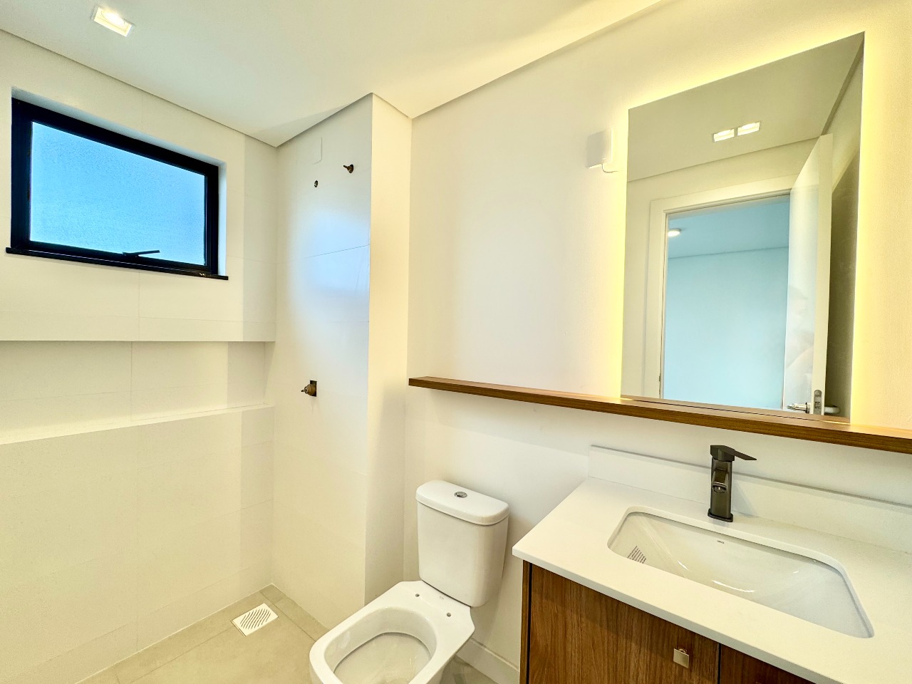Possui 2 dormitórios, sendo 1 suíte, living integrado, cozinha com churrasqueira a carvão, banheiro social, área de serviço, além de acabamento em piso porcelanato, portas e rodapés brancos, janelas amplas, gesso em todos os ambientes, aquecimento de água a gás e preparação para ar-condicionado tipo split.