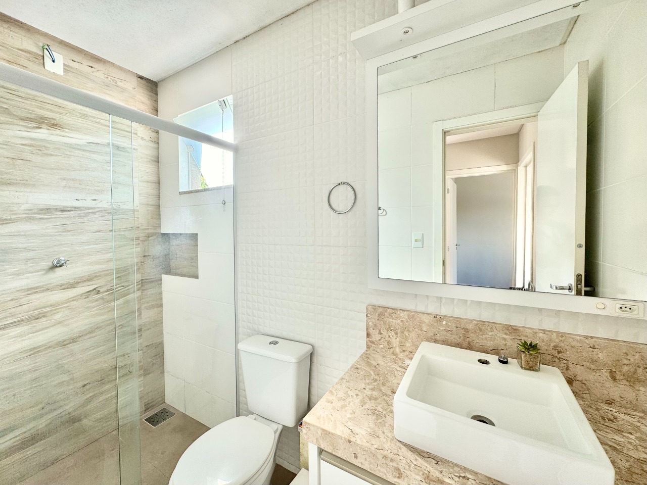 Com 53,87 m², são 2 quartos, banheiro social, vaga coberta e móveis sob medida que ficam no imóvel, incluindo ar-condicionado na sala e no quarto, geladeira, forno e fogão.