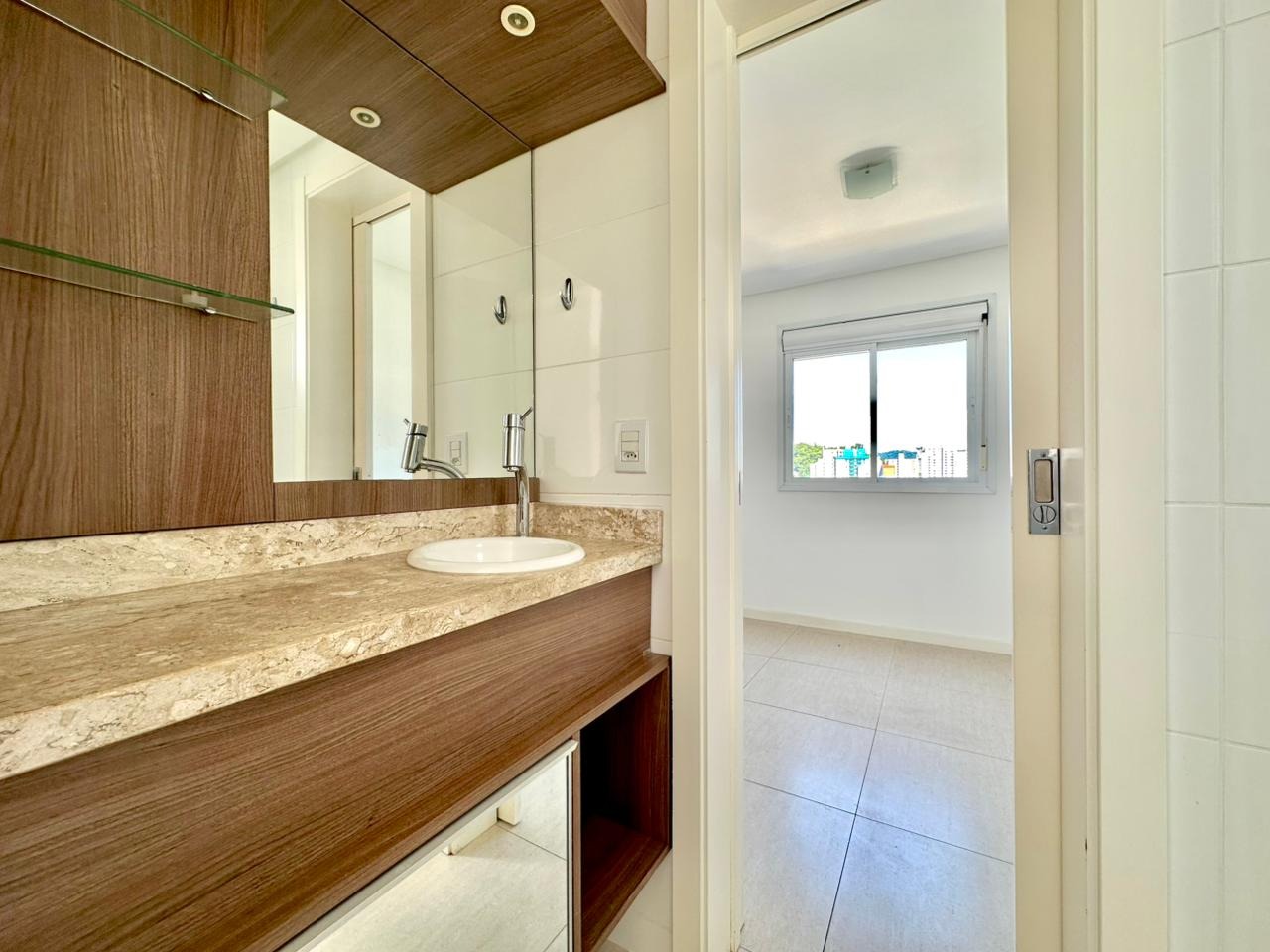 Com oitenta e cinco vírgula trinta e quatro metros quadrados de área privativa, o imóvel apresenta living e cozinha em ambientes integrados, proporcionando amplitude e funcionalidade no dia a dia. Conta também com lavabo, área de serviço e uma ampla sacada com churrasqueira, perfeita para relaxar ou receber amigos.
