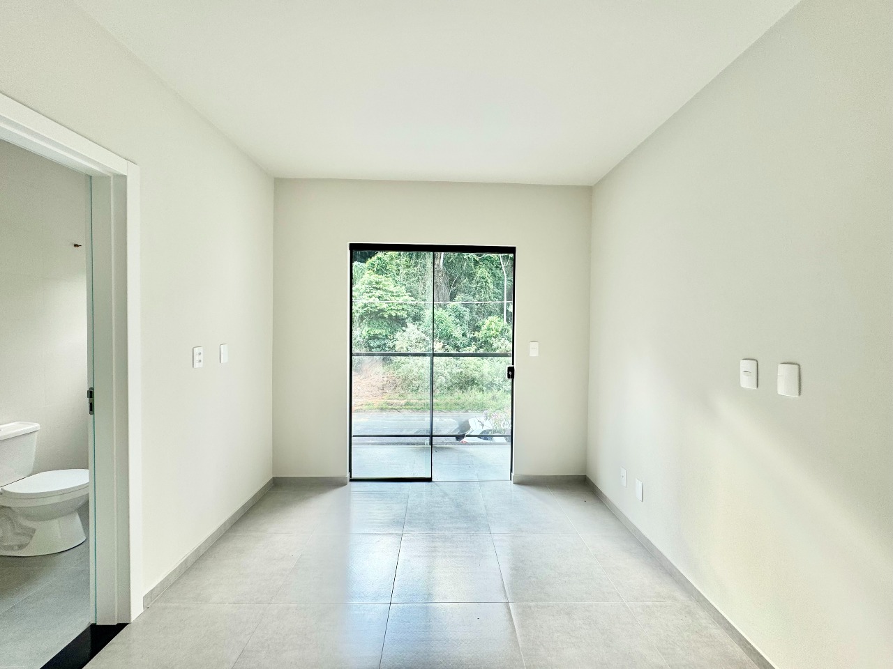 Os acabamentos trazem um toque moderno e clean, com piso em porcelanato e portas brancas, criando uma base neutra perfeita para personalizar do seu jeito.
