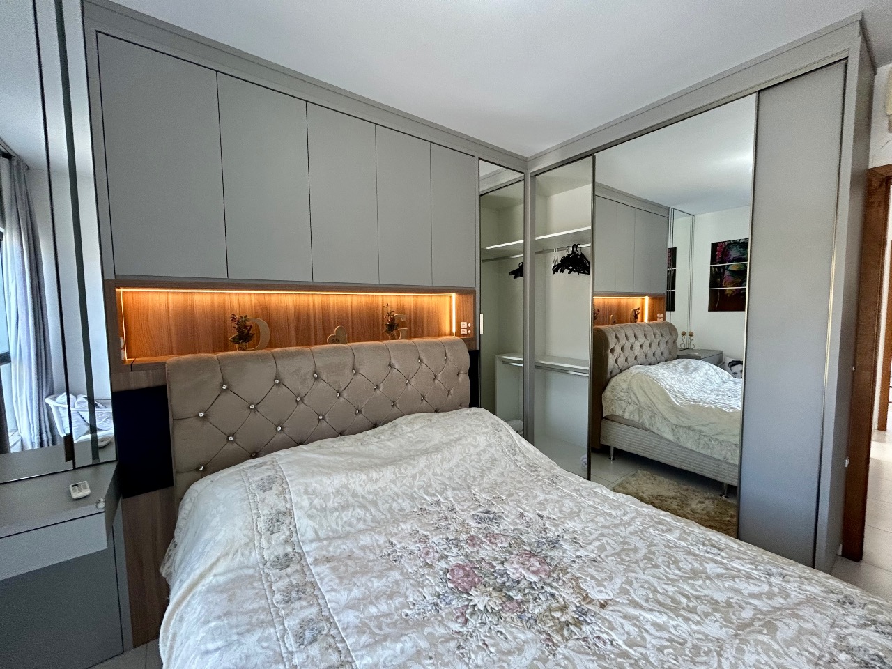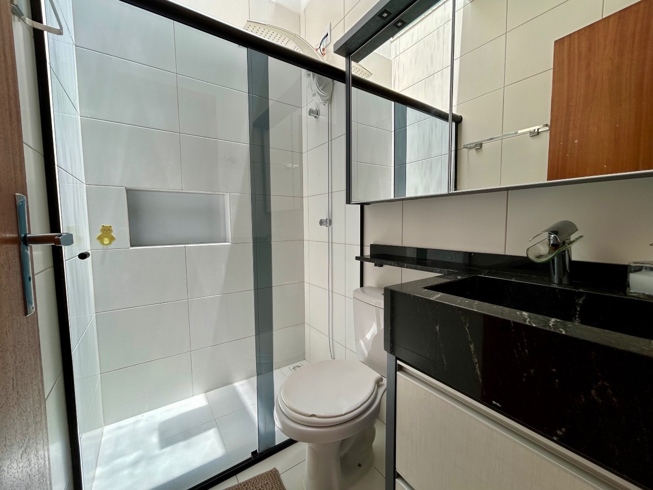 No piso superior, encontram-se dois dormitórios amplos, sendo o principal mobiliado. Ambos contam com ar-condicionado, proporcionando conforto térmico em todas as estações, além de um banheiro social completo que atende perfeitamente este andar.