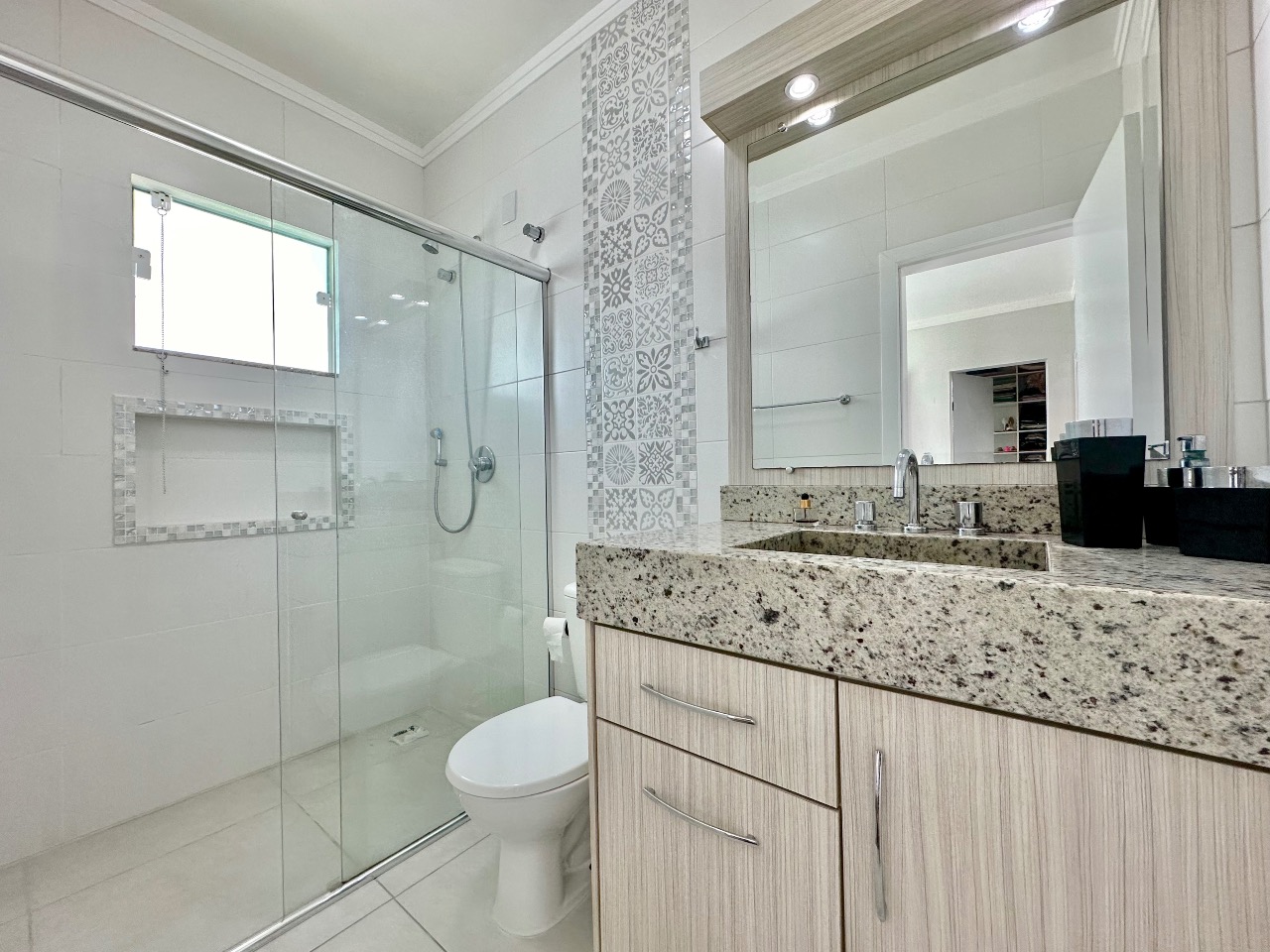 O piso superior abriga 3 dormitórios, sendo 1 suíte com muito espaço e conforto, além de banheiro social.