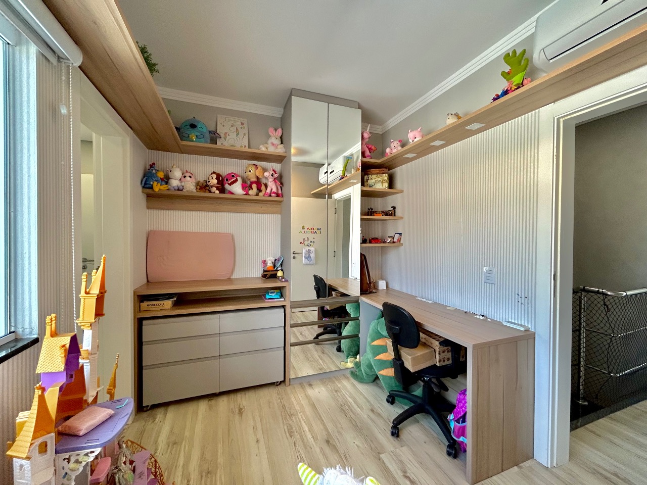 O imóvel será entregue com móveis planejados e ar-condicionado em todos os ambientes, permanecendo no imóvel todos os itens, exceto: sofá, 1 televisão, adega, lava louças, lava roupas, cama de casal e home da sala.