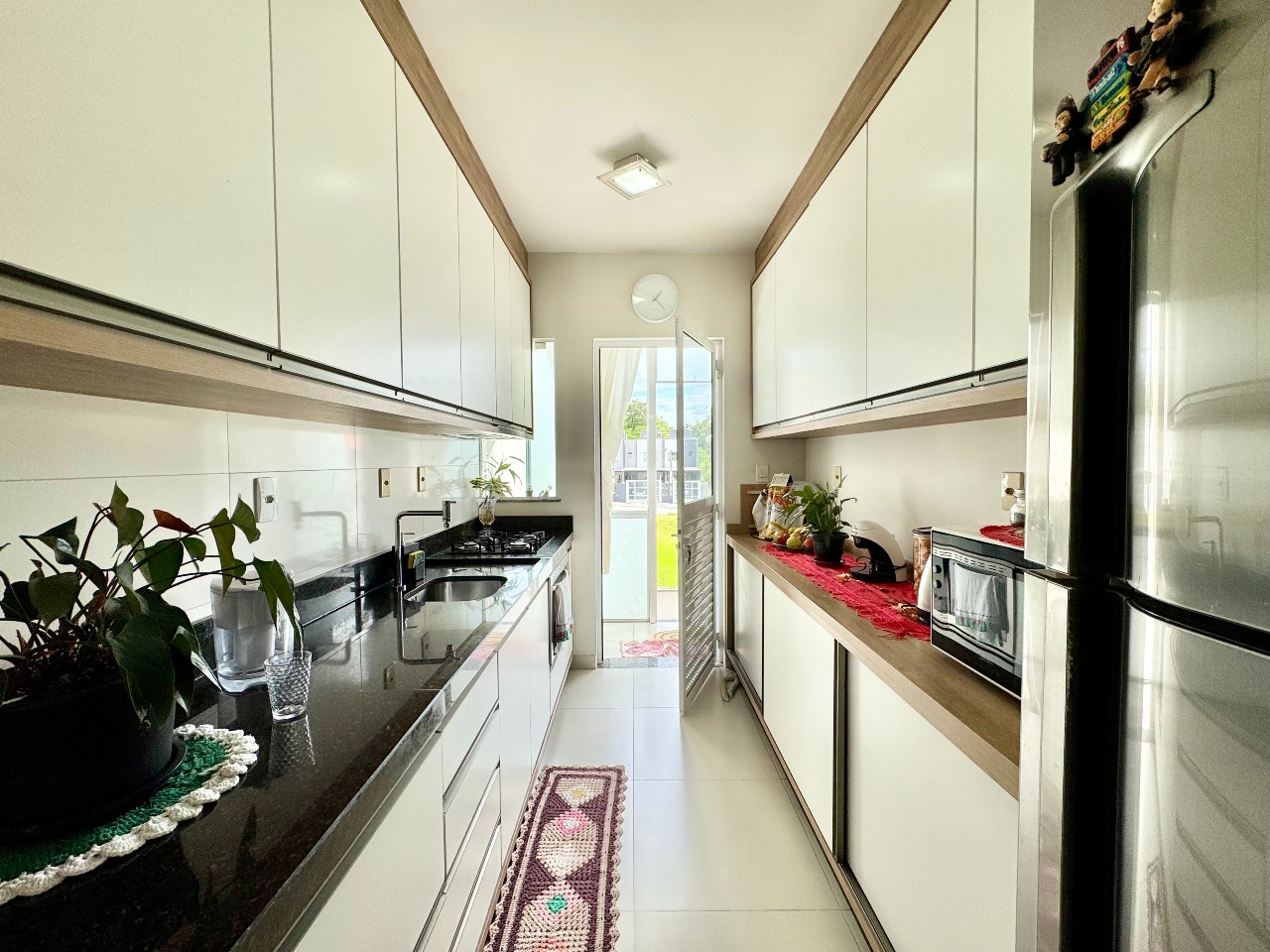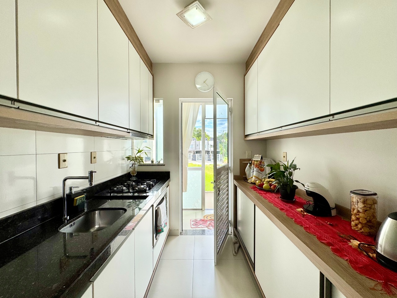 O imóvel conta com 2 dormitórios e 2 banheiros sociais, oferecendo mais comodidade para a rotina da família e para receber visitas. A área social é funcional e bem distribuída, integrada à cozinha sob medida, que permanece no imóvel com fogão, forno e depurador, um diferencial para quem busca praticidade desde o primeiro dia.