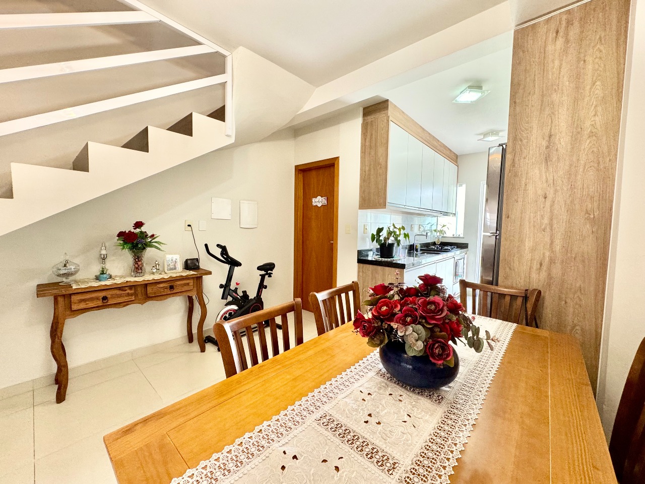 Possui ainda área de serviço, 2 vagas de garagem e um espaço de porão, ideal para depósito, organização ou até mesmo adaptação conforme a necessidade da família. Permanecem também o painel da sala, os móveis dos banheiros e um aparelho de ar-condicionado em um dos quartos.