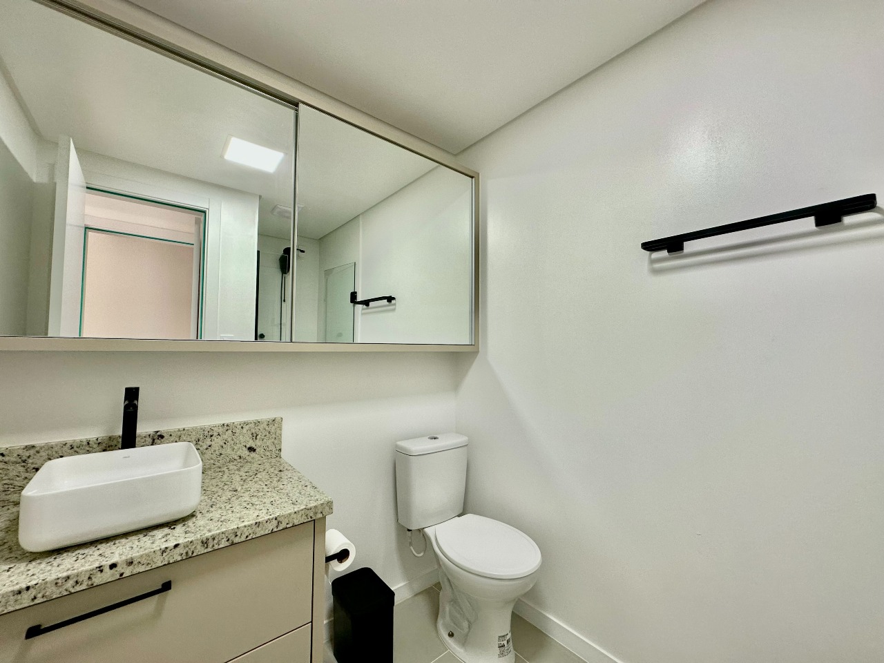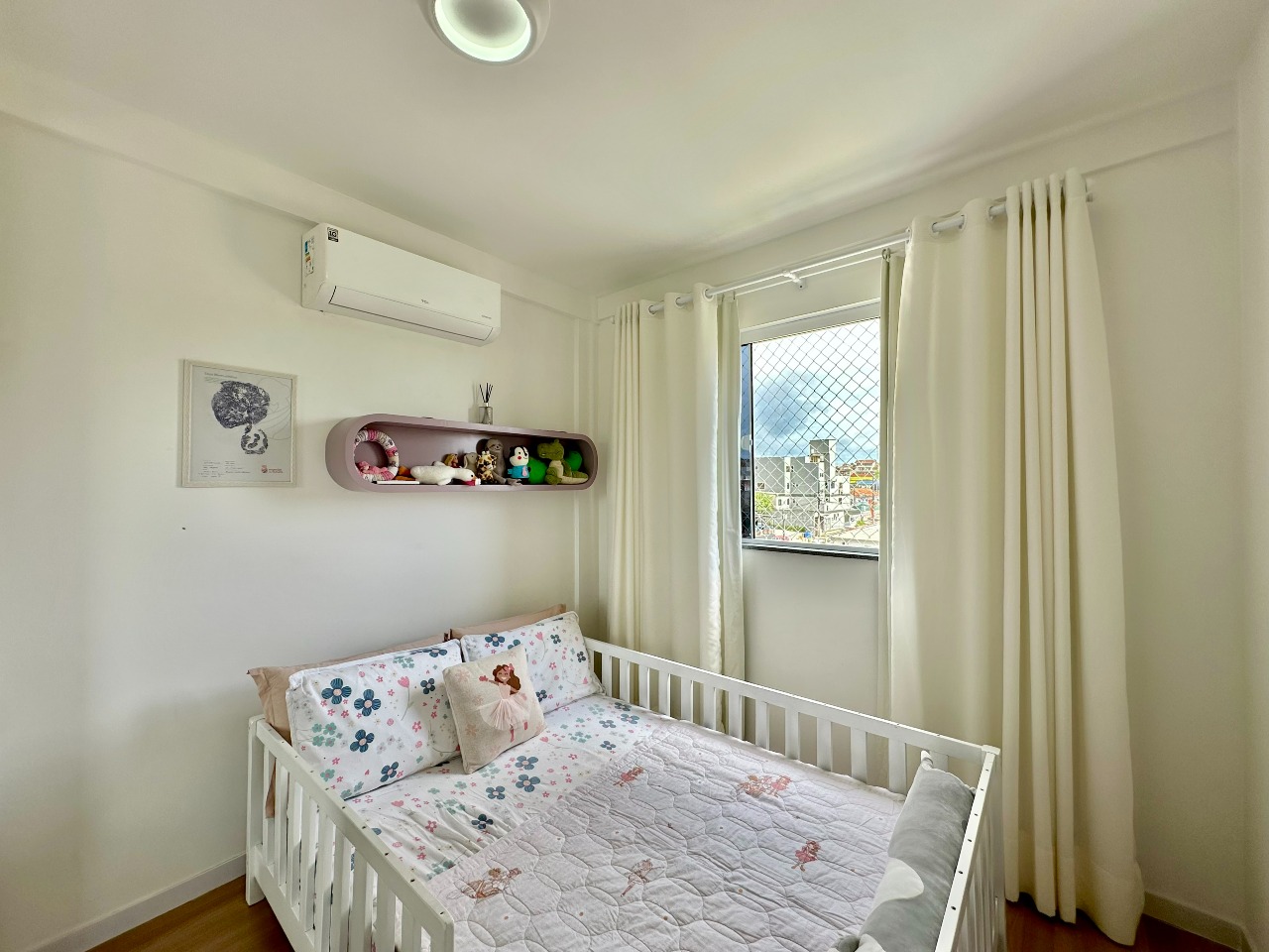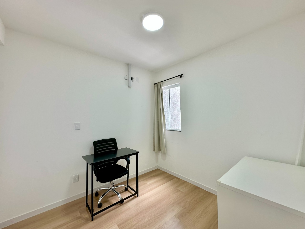 O padrão de acabamento é um dos grandes diferenciais do imóvel, com paredes em calfino, rebaixo em gesso, portas brancas, piso em porcelanato e espera para ar-condicionado tipo split, garantindo conforto térmico e um visual moderno e elegante.